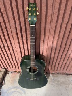 A Washburn D100mcbl acoustic guitar with a dark green finish with case$200Halndle Bch, FL