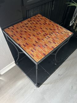 MID-CENTURY WROUGHT IRON & GLASS TILE SIDE TABLE-$30Dallas, TX