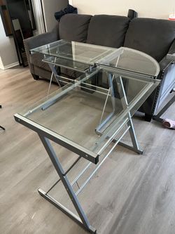 L-Shaped Silver & Glass Clear/Chrome 🖥️ Computer Desk with Keyboard Tray⌨️💻$150Dallas, TX