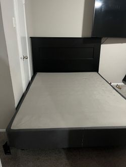 Queen bed frame Headboard /Frame & box spring Metal Frame Black Headborad Wood Great conditions$125Dallas, TX