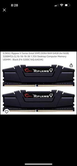 G.SKILL Ripjaws V Series (Intel XMP) DDR4 RAM 64GB (4x16GB) 3200MT/s CL16-18-18-38 1.35V Desktop Computer Memory UDIMM - Black (F4-3200C16Q-64GVK)$150Oceanside, CA