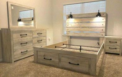 Cambeck Whitewash Storage Panel Bedroom Set. Bed, Dresser, Mirror. Financing Options Available $800Dallas, TX