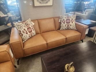 Modern Euro Style Sofa in warm caramel authentic LEATHER with metal leg$1,600Gresham, OR