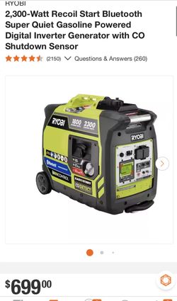 New Ryobi 2,300-Watt Recoil Start Bluetooth Super Quiet Gasoline Powered Digital Inverter Generator with CO Shutdown Sensor$500Dallas, TX