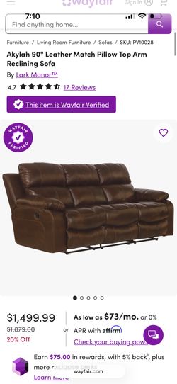 Akylah 90" Brown Leather Reclining Sofa Set$1,000Phoenix, AZ