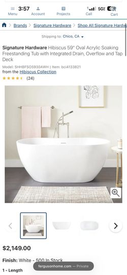 Signature Hardware Hibiscus 59" Oval Acrylic Soaking Freestanding Tub with Integrated Drain, Overflow and Tap Deck Model: SHHBFSO5930AWH | Item: bci41$1,500Chandler, AZ