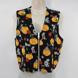 Vintage Capelli Designs Halloween Cat Pumpkin Zip Vest M/L Made in USA$24St. Petersburg, FL