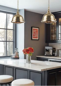 Kira Home Liberty - Two Modern industrial pendant lamp of 13 Inches, metal cage screen, adjustable hanging height, Cold brass finish$100Rialto, CA