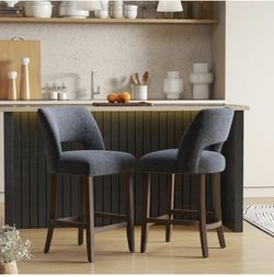 VKNOW two bar stools, upholstered counter height, modern stools with wooden legs for kitchen, dining island, bar, navy blue$170Rialto, CA