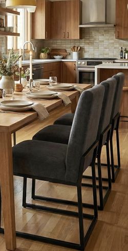 VKNOW Two Bar Stools, Counter Height Upholstered, Modern Counter Stools with Black Legs for Kitchen Island Dining Room Bar, Dark Gray-Black Legs$170Rialto, CA