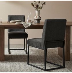 Two upholstered chairs for dining room, chairs Modern for dining room, linen kitchen chair, with black metal base for kitchen or office, dark gray $150Grand Terrace, CA