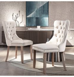 Two Velvet dining chairs, dining chairs with wooden legs and traction ring, luxury side chair with nail head finish and backrest$130Fontana, CA