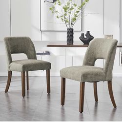 Two upholstered chairs for dining chairs Modern, linen kitchen chair, dinner chair With black metal base for kitchen or office, dark gray$140Rialto, CA
