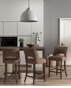 VKNOW Three bar stools, Bar stools upholstered in height of Modern counter with legs of Wood for kitchen, dining island, Bar, brown color$260Rialto, CA