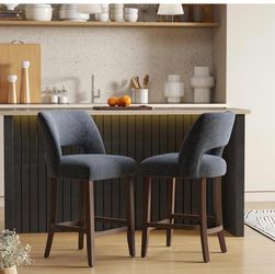 Two bar stools, bar stools Upholstered with counter height, modern stools with Wooden legs for kitchen, dining island, bar, blue color Marine$160Rialto, CA