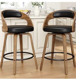 Two 26-inch rotating bar stools of Curved wooden counter height, bar chair Upholstered in modern mid-century PU leather with Back$170Rialto, CA