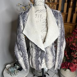 Bebe Women’s Gray Cream Snake Print Sherpa Jacket.$60Trabuco Canyon, CA