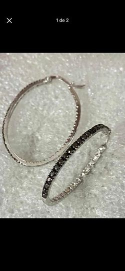 Aretes Argollas Plata 925 Piedras Azabache Joyería Antigua $30Hialeah, FL