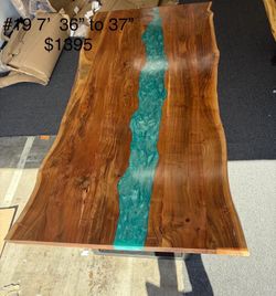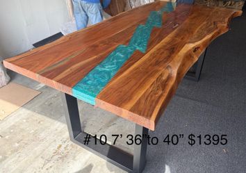 7-Foot Live Edge Acacia Wooden Table β Turquoise Epoxy River π$1,395San Diego, CA