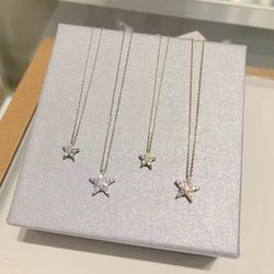 Luxury-sleek S925 silver plated with 18k gold pentagram necklace with full diamonds in star shape. Star within a star diamond collar necklace.$589Seattle, WA
