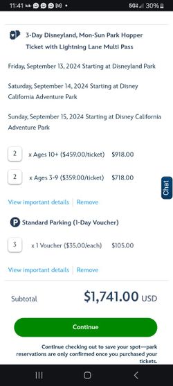 2 ADULTS 2 KIDS DISNEYLAND TICKETS $1,000San Francisco, CA