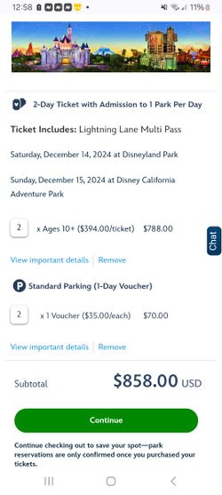 2 Adult & 2 Kids Disneyland Tickets $1,000Fresno, CA