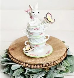 Easter Bunny in Stackable Teacups With Butterflies Decor$28Bonita, CA