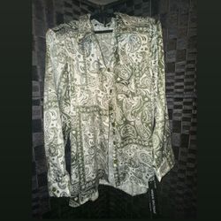 Brand New (Size 3XL) Olive Green&White Paisley Print Button Up Blouse $20Corpus Christi, TX