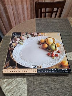 VTG Gibson Housewares Fruitful 18 3/4" White Ceramic Meat SERVING PLATTER NOS$15Monterey Park, CA