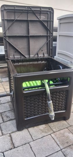 50ft Hose + Suncast Auto Guide Crank Wicker Brown Resin Hose Reel Box Lawn Garden Pool Spa Dock Boat Yard Car Boat Wash Pressure Cleaning Sprinkler$75Pompano Beach, FL