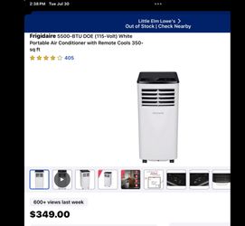 Frigidaire 5500-BTU White Portable Air Conditioner with Remote Cools 350sq Ft$275Oak Point, TX