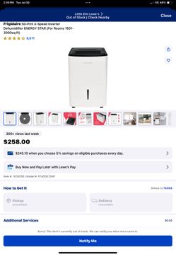 Frigidaire 50-Pint 3-Speed Inverter Dehumidifier ENERGY STAR (For Rooms 1(contact info removed)q ft) $155Oak Point, TX