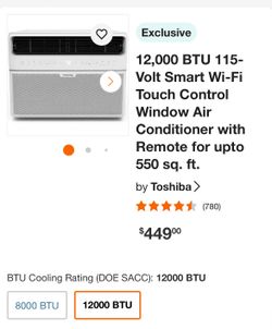 Retail $449 Toshiba 12,000 BT115-Volt Smart Wi-Fi Touch Control Window Air $349Oak Point, TX