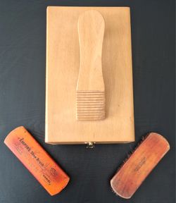 VINTAGE WOODEN SHOE SHINE VALET BOX - ESQUIRE DE LUXE [YUGOSLAVIA]$40New Castle, Delaware