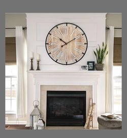New 24 Inch Grand Farmhouse Wall Clock, Vintage-Inspired Wood & Metal Design with Large Etched Numbers, Silent Battery-Powered Timepiece for Offices, $35Irving, TX