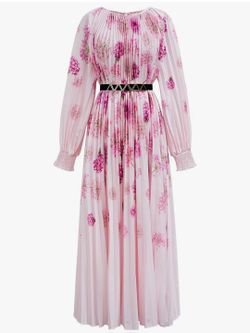 Women Long Sleeve Maxi Dress Watercolor Floral Print Crewneck Casual Pleated Summer Long Dresses with Belt$35Irving, TX