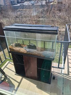 35gl Tank With Stand Lights Filter Top Cover And Rocks$20Farmers Branch, TX