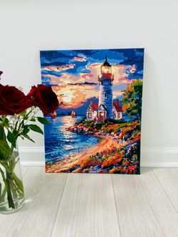 Sunset Lighthouse Painting - Handmade Coastal Wall Art 20 x 16$258Fort Washington, Maryland