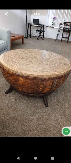 Vintage Maitland Smith Style Coconut Shell and Veneer Marble Drum Coffee Table$350Orlando, FL