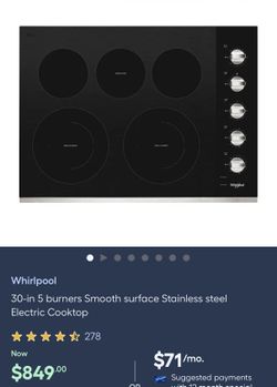 Whirlpool 30-in 5 burners Smooth surface Stainless steel Electric Cooktop$600Orlando, FL