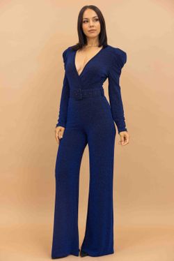 Royal Blue jumpsuit Long Sleeve Puff Sleeve V Neck Belted Prom Jumpsuit$43Hacienda Heights, CA