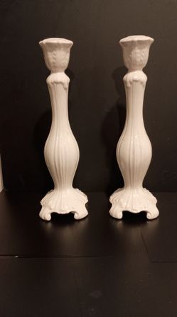 Vintage Abigail's Of Italy Set Of 2 White Candle Sticks In Perfect Condition H13.5"$30Bellevue, WA