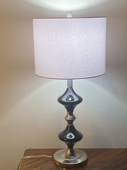 New Modern Farmhouse Table Lamp With The Glass Globe Base Brushed Nickel Accents And White Or Black Lampshade H23"$20Bellevue, WA