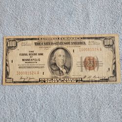 1929 $100 Federal Reserve Bank Note Brown Seal$235Auburn, WA