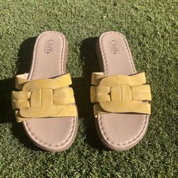 Cliffs size 8 Yellow leather slides sandals$30Waddell, AZ