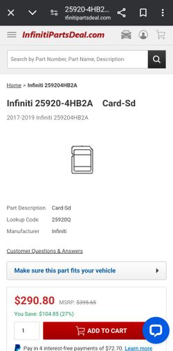 Genuine Nissan OEM NAVIGATION SD MAP CARD 25920-4HB2D$80Phoenix, AZ
