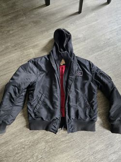 ALPHA INDUSTRIES BOMBER JACKET MENS XL X LARGE MA 1 D TEC WITH ZIP HOODIE ALPHA FLIGHT AUTHENTIC ORIGINAL BLACK COLOR DIXXON VANS FILSON CARHART LA$200Arcadia, CA