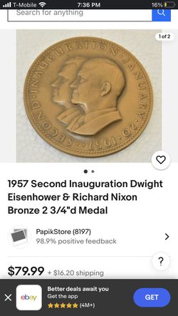 official 1957 Dwight Eisenhower Inaugural Medal$35San Jose, CA