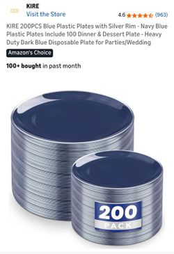 200 blue plastic plates with silver rim.#233$49San Antonio, TX