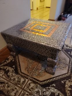Handcrafted Indian Embossed Metal Low Table / Bajot Accent Stool with Copper Inlay Top 14"x14"$75Las Vegas, NV
